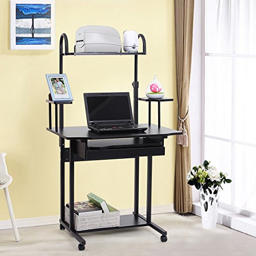 • Diseño práctico y útil - Escritorio con bordes lisos y pulidos para evitar el riesgo de daños, una bandeja del teclado extensible y silenciosa, 4 ruedas (2 con freno) para el fácil desplazamiento y seguro estacionamiento. Ideal para la oficina, sala de estar, dormitorio, estudio, etc.