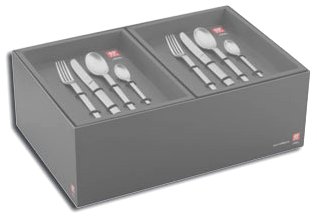 • Contenido de la caja : 6 cucharas llanos, 6 cuchillos de mesa , 6 tenedores , 6 cucharas cena café y 6 tenedores de postre