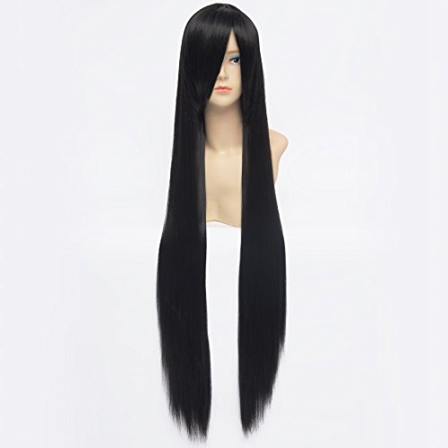 100Cm Negro Recta Larga Sintetica Llena Cosplay Anime Del Traje De La Peluca