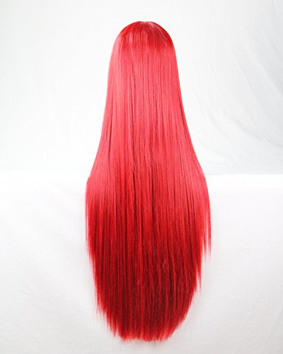 Mujeres Ladies Girls 80cm Color Rojo larga recta pelucas de alta calidad Carve pelo del partido de Cosplay del Anime del traje Bangs completa Sexy Pelucas
