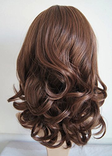 Aivtalk Peluca de Cabello Sintético Rizado Ondulado Medio-Largo Pelo Postizo Marrón Efecto Natural para Mujer Chica + Redecilla + Peine