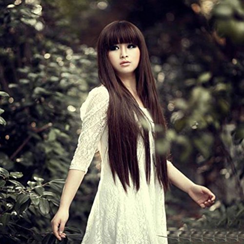 Rise World Wig 70Cm De Largo Derecho Oscuro Partido De Brown Calor Friendly Cosplay Peluca Llena Del Pelo De Las Mujeres