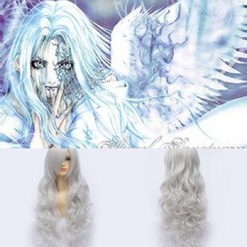 angel Rosiel Plata Santuario Cosplay Blanco Animado Mucho Calor Cabello Fibra Sintetica Traje Rizado Ondulado Mujeres Peluca Llena