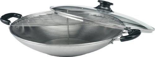 - Wok de acero inoxidable, incluye tapa de cristal de 35 cm