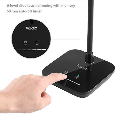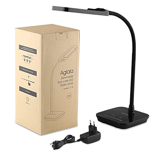 Aglaia Lámpara de Mesa 7W de cuello flexible, 6 Niveles de brillo y Temporizador de una Hora por regulador sensible al tacto, atención de ojos con las luces sin parpadeo y sin fantasma (LT-T4 Negro)