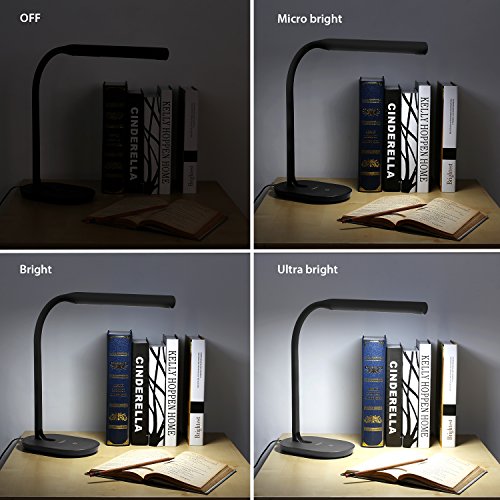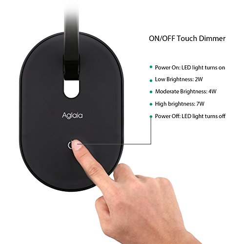 Aglaia Lámpara LED de Escritorio 7W, Lámpara de Mesa con 2A Puerto USB para Cargar, 3 Niveles de Luminosidad por Control Táctil (Negro)