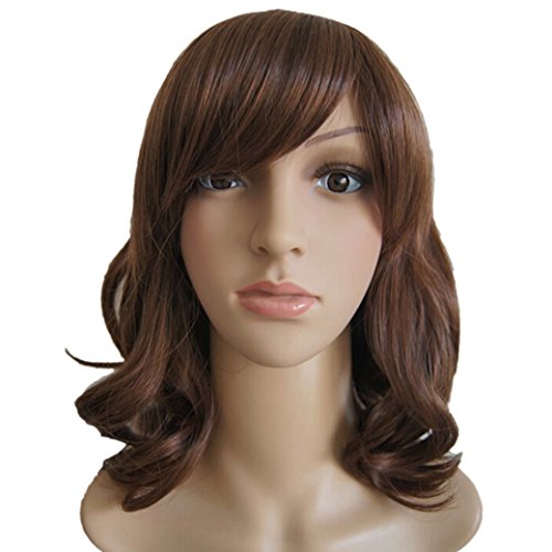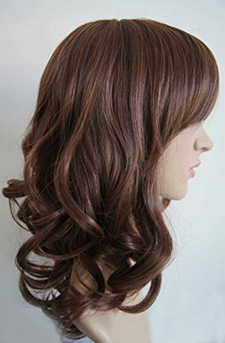 Aivtalk Peluca de Cabello Sintético Rizado Ondulado Medio-Largo Pelo Postizo Marrón Efecto Natural para Mujer Chica + Redecilla + Peine