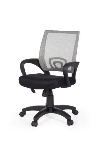 Amstyle Rivoli - Sillón de oficina con asiento acolchado y respaldo de red, color negro y gris