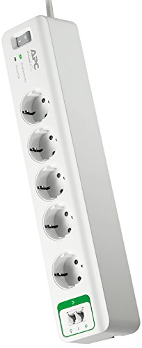 APC Surge Arrest Essential - PM5T-GR - Regleta con protección contra subidas y picos de tensión, Incluyendo Protección línea telefónica