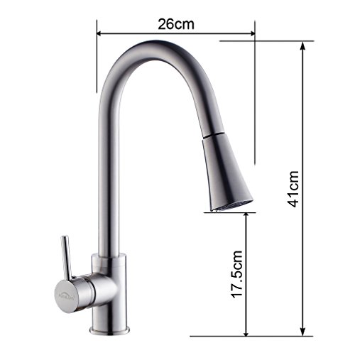Auralum® 2 Años de Garantía Fregadero De Un Seno Palanca De Grifo De La Ducha Monomando De Níquel Cepillado Con Cartucho De Cerámica