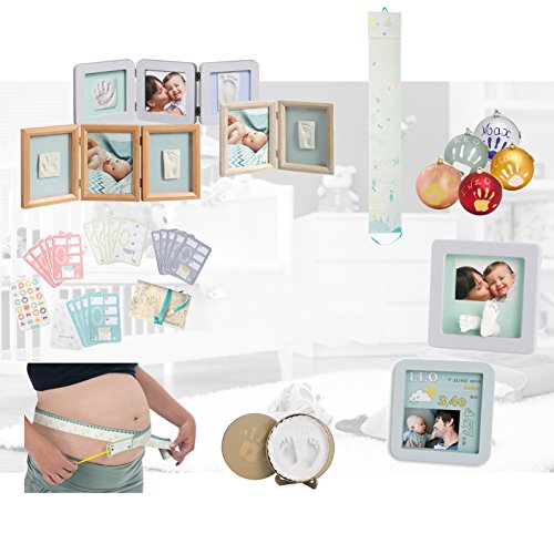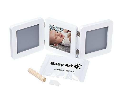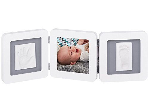Baby Art 34120052 - Marco triple para foto con material para huella de pie y mano (bordes redondeados), color blanco y negro