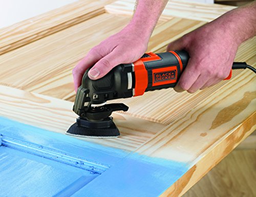 Black and Decker MT300KA-QS - Pack con multiherramienta oscilante, 5 acoplamientos y 6 hojas de lija, con cable, 230 V, 300 W, color negro y naranja