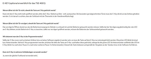 - Seguridad óptima: hasta 6 usuarios, 1 código secreto y hasta 5 llaves E-KEY opcionales, Un millón de códigos diferentes, El cilindro se activa aproximadamente entre 6-7 segundos después de introducir el código