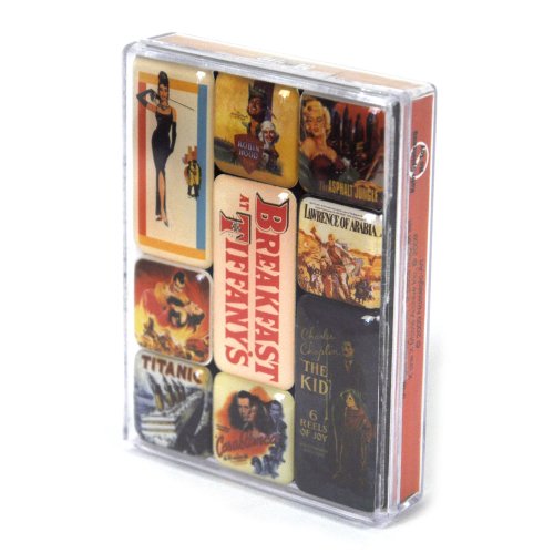 - A set of 9 fridge magnets featuring classic movie poster artwork, including Casablanca, Gone With the Wind and Lawrence of Arabia.