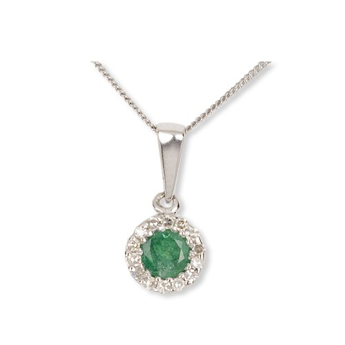 CHIC 6408 - 3 - Colgante de mujer de oro blanco (9k) con esmeraldas y diamantes