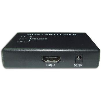 Conmutadoar manual de HDMI con mando a distancia, para conectar varios aparatos HDMI a las nuevas TV de ultima generacion a traves de un cable HDMI.Conectores:-ENTRADA 3x HDMI 19 PINES HEMBRA-SALIDA 1x HDMI 19 PINES HEMBRACaracteristicas:* Signal Inputs / OutputsInput DDC signal: 5 volts p-p (TTL)Maximum Single Link Range: 1920x1080pOutput viedo: HDMI 1.3b*Operating frequencyVertical Frecuency Range: 50/60HzVideo Amplifier Bandwidth: 2.5Gbps/250Mhz*Resolutions (HDTV)Interlaced (50/60Hz): 480i,576i,1080iProgressive (50/60Hz): 480p,576p,720p,1080p*EnvironmentalOperating Temperature: 0ºC to +70ºCOperating Humidity: 10% to 85% RH (no condensation)Storage Temperature: -10ºC to +80ºCStorage Humidity 5% to 90% RH (no condensation)*Medidas:Tamaño: 80 x 58 x 18mmPeso: 55g.*Alimentacion-No necesita fuente de alimentacion externa-Consumo: 5WContenido de la caja:-Conmutador HDMI 3 entradas 1 salida-Mando a distancia