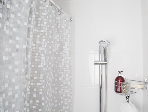 Croydex AE543440 - Cortina de ducha de PVC con diseño de mosaico (1,8 x 1,8 m), color plateado