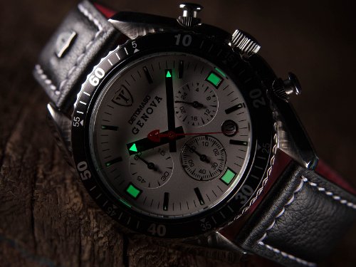 Detomaso Genova - Reloj de cuarzo para hombres, con correa de cuero de color negro, esfera plateada