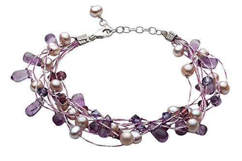 Dew - Pulsera de mujer de plata de ley con perlas, amatistas y piedras multicolor, 21 cm
