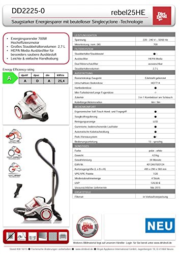 Dirt Devil Rebel 25 HE - Aspirador sin bolsa, ciclónico, depósito de polvo 2,7 l