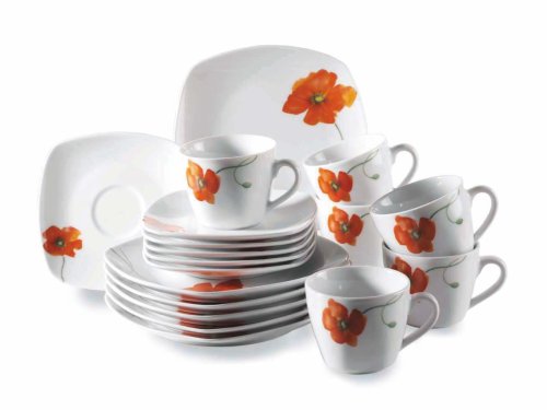 Domestic 920475 - Juego de café de porcelana (18 piezas), color blanco con amapola