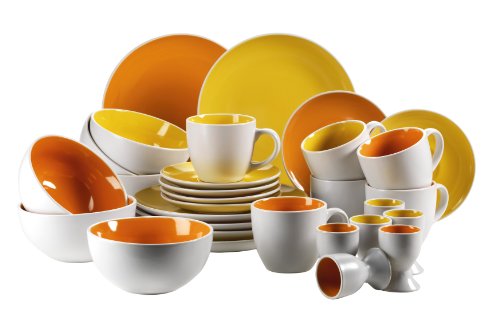 | Title | Domestic 923194 Two Tone - Juego de vajilla para desayuno (30 piezas, tazas y platos, platos de postre, cuencos y hueveras), color amarillo y naranja |