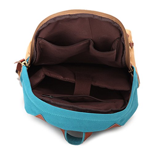 Eshow Bolso de Mochila de Tela de Lona para Chicas o Mujeres, Bolos de Escuela o de Ocio, Color Azul y Caqui