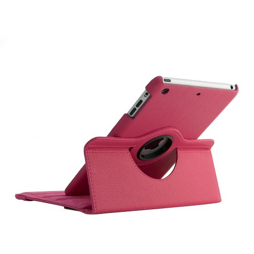 Evecase 8pcs de Accesorios para Nuevo Apple® iPad® Mini: Funda PU de Cuero Sintético Rosado con Soporte Giratorio Integrado + 3x Protector de Pantalla Anti Reflejo ( Matte ) + 3x Stylus Lápiz Opticos ( Plata / Rojo / Negro ) + Colgante Limpia Pantalla de