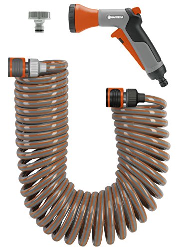 - El paquete incluye: 1 set de manguera espiral GARDENA de 10 m, incl. ducha de riego, conector stop, conector de manguera y de grifo, 5 años de garantía GARDENA