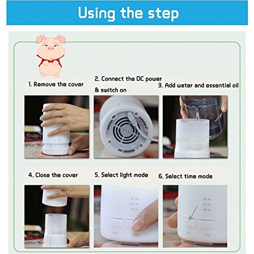 - Funcionamiento ultrasónico silencioso de crear instantánea relajante aromaterapia añadiendo aceites esenciales.