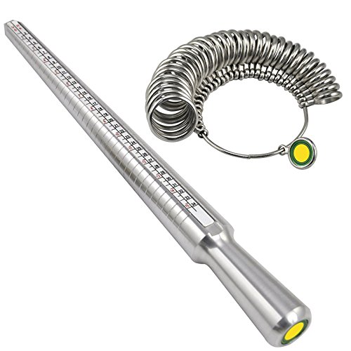 iDealhere Medidor de Anillo Sizer Tool Gauge Tamaño + palillo de Aluminio para Joyero