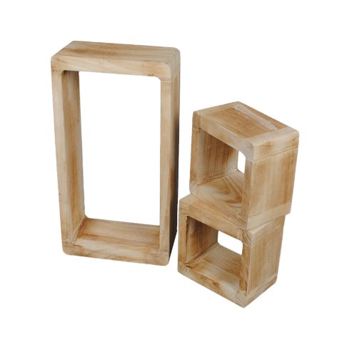 Juego de 3 estanterías en forma de cubo de madera shabby maciza marrón claro para salón