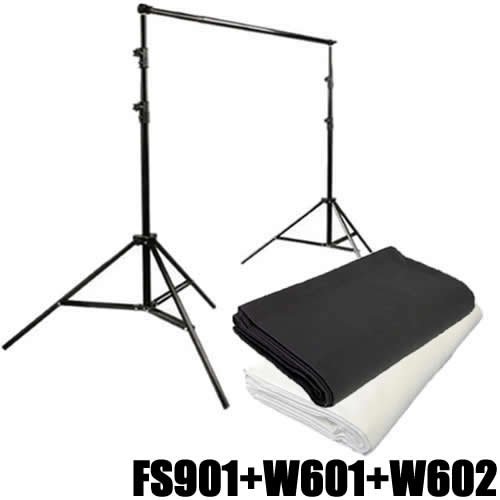 Kit Soporte Portafondos Tripode DynaSun FS901 HQ con Fondo Blanco y Negro 3x6mt Estudio Foto Video
