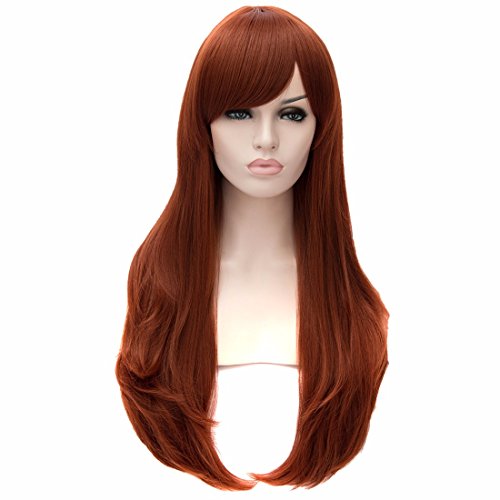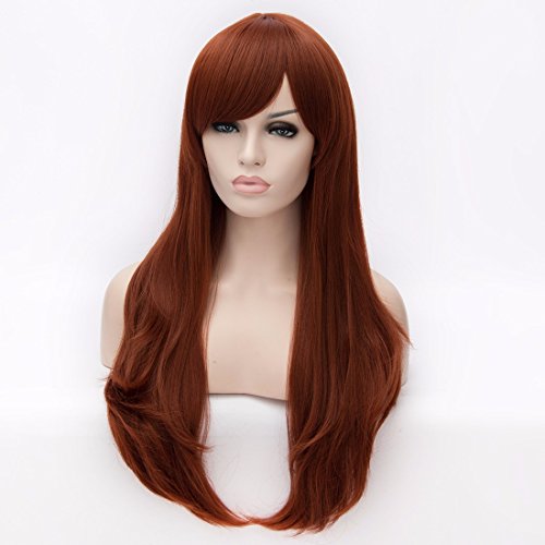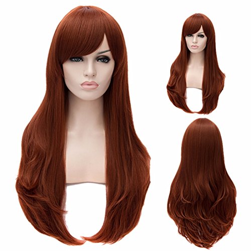 Las Mujeres De Color Rojo Castano Largo Rizado Natural De La Moda Del Partido Cosplay Rectas Nuevas Pelucas Llenas