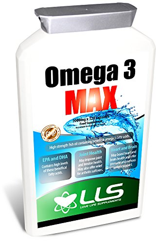 LLS Aceite de Pescado de Alta Resistencia Omega 3 MAX | Fuente Natural de Omega 3 Ácidos Grasos Esenciales (EPA y DHA) | 330mg EPA, 220mg DHA | 1000mg x 120 Cápsulas | Suplemento Premium GMP (Ayuda a Mantener Saludable la Piel, el Cabello, los Dientes, lo