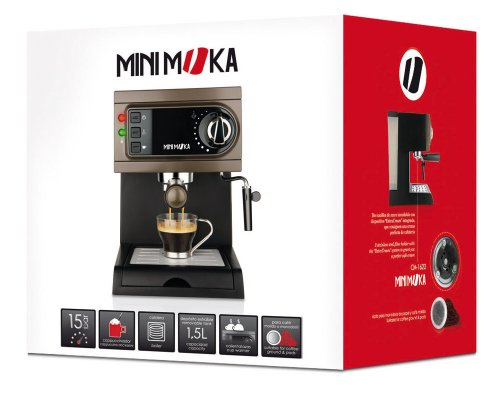 Mini Moka CM-1622 - Cafetera espresso manual, apta para monodosis, color negro/gris