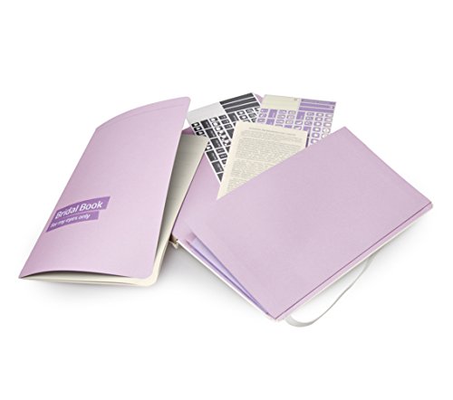 - Tapa en blanco perla con grabado en seco y guardas de color violeta más 3 marcadores de cinta a juego, doble bolsillo interno expandible