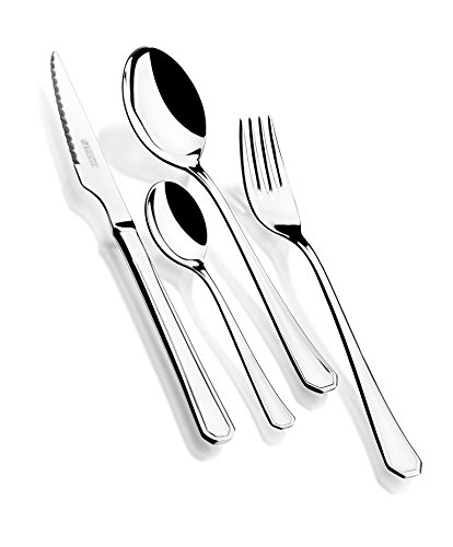 - Set 75 piezas: 12 cucharas mesa/12 tenedores mesa/12 cuchillos chuleteros/12 cuchillos postre/1 cazo sopa/1 cuchara legumbres/1 tenedor legumbres/12 tenedor pastel/12 cucharitas café