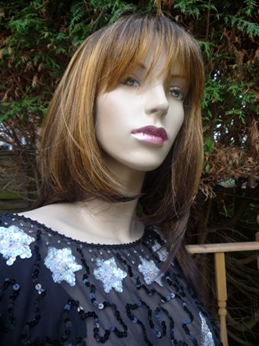 - Encantadora peluca muy natural de media a larga melena con flequillo.¡Muy versátil!