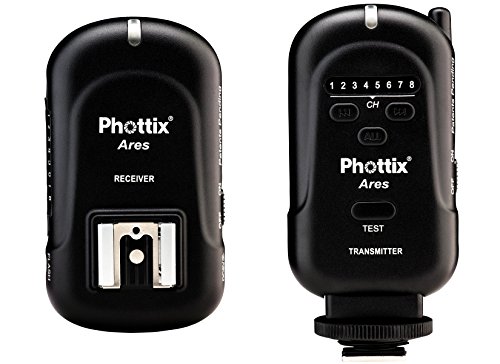 Phottix Ares - Disparador flash con emisor y receptor (8 canales, 2,4 GHz, alcance de 200 m, velocidad de sincronización de hasta 1/250 s), color negro