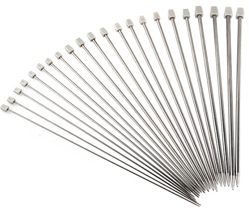 - Cubre todas tus necesidades de tejer con este conjunto de 11 pares de hermosas agujas rectas de una punta, de acero inoxidable.