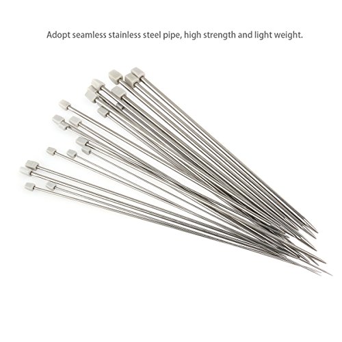 - Hechas de acero sin costura, forjadas en acero hueco, inoxidable, estas agujas son durables y ligeras. Tienen puntas estándar y se pulen hasta conseguir un acabado liso y fino para tejer rápidamente sin enganches o enredos.