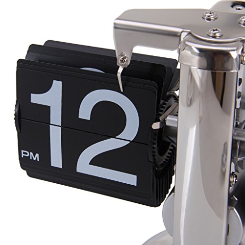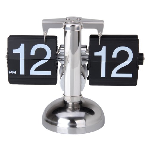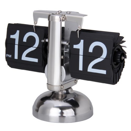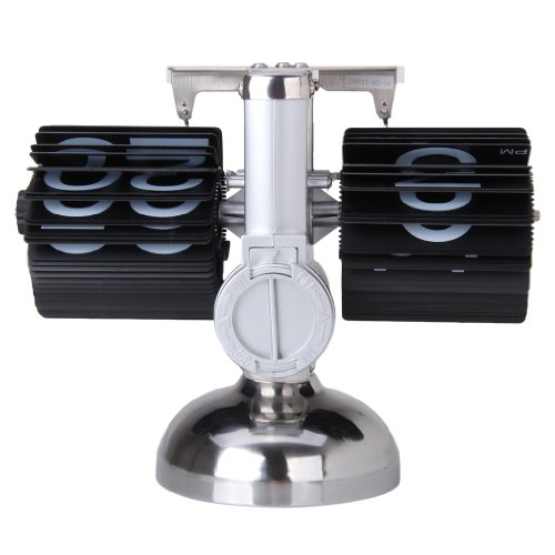 Reloj de Escritorio Digital Despertador (Alarma de Mesa, Auto Flip, Tipo Libra, Soporte Metal, Estilo Retro) - Negro