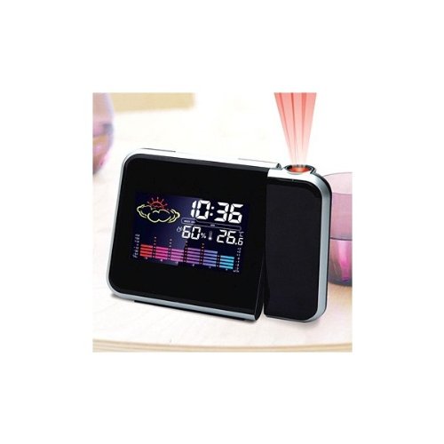 Un gadget ideal para tu dormitorio u escritorio, visible en la oscuridad, con solo pulsar un botón. Gadget que te mostrará la hora junto a la temperatura local, además podrás activar la alarma y su proyección, que hará más atractiva las funciones del reloj. Descripción: - Pantalla a color y luz de fondo LED - Tiempo: 2 modos (12 horas/24 horas) están disponibles - Termómetro digital: Centígrados o Fahrenheit - Alarma y función de repetición - Temperatura / humedad pantalla: Rango de humedad: 20% RH-99% HR; - Rango de temperatura: 0 ° C-50 º C/32 º F a 122 ° F - Calendario - Máx. / Mín. registros de temperatura y humedad - Fuente de alimentación: 3xPilas AAA (no incluidas) - Tamaño: 13.8 x 9 x 5.1cm (aprox) - Color: Negro - Peso: 155g - Peso incluido embalaje: 192g - No incluye cable de red.
