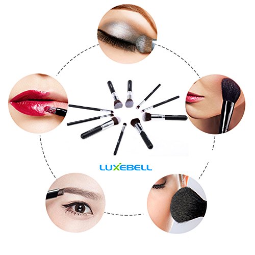 Set de Brochas Luxebell 10pcs Pinceles Profesionales Profesional Pro HQ Brushs Makeup Cosmético Combinando Corrector Sombra de Ojos Ceja en Polvo (Negro, Plata)