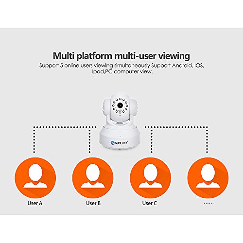Sunluxy? CMOS CCTV IP Cam ¡§?Ra infrarrojo Cam ¡§?Ra de monitoreo Webcam inalámbrica de Int ¡§?Ríe WiFi H.264 1 MP HD 720P P2P Pan/Tilt IR nocturna D ¡§?tection de movimiento s ¡§?Curit ¡§? blanco