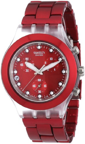 Swatch DIAPHANE CHRONO - Reloj de caballero de cuarzo, correa de acero inoxidable color rojo (con cronómetro)