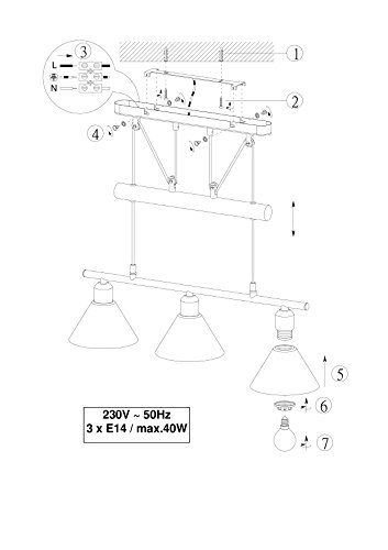 Trio 3751031-07 Serie 3751 - Colgante con 3 luces, bombillas excluidas, E14, 40 W, 230 V, A++, E, IP20, 180 x 66 x 14 cm, diámetro 14 cm, metal, blanco