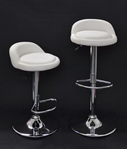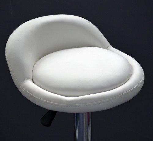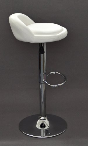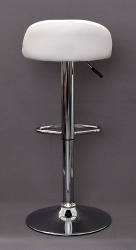 - Características del artículo: asiento acolchado en piel sintética de color blanco; base y reposapiés en acero cromado; rotación de 360°; altura regulable gracias a palanca hidráulica con tapa; la base dispone de un anillo de goma para evitar arañazos en las superficies. Se envía desmontada con instrucciones ilustradas para el montaje (no requiere herramientas adicionales).