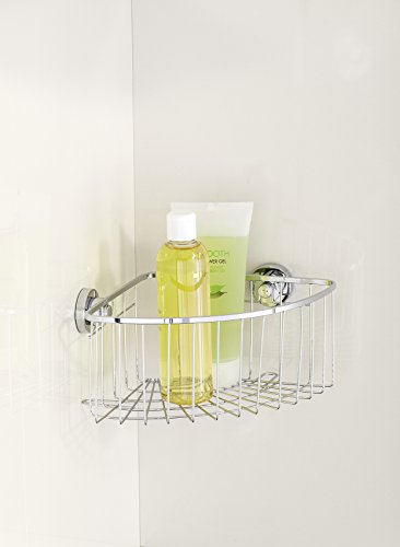 Wenko 17792100 Bovino Power-Loc - Cesta de esquina, se sostiene sin necesidad de taladrar, de acero inoxidable brillante (26 x 11 x 18 cm)